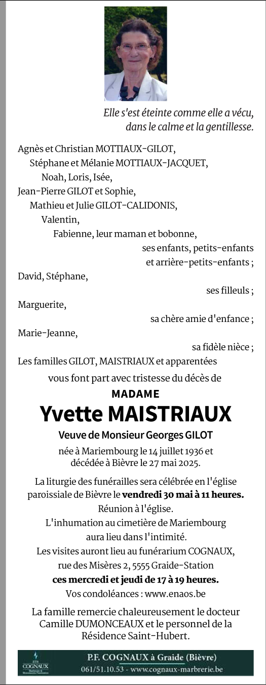 Overleden te Bievre (5555, België) op dinsdag 27 mei 2025 op 88-jarige leeftijd