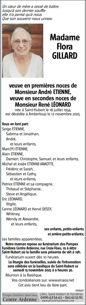 Died in Amberloup (6680, Belgium) on 12 November 2025 at the age of 91 years