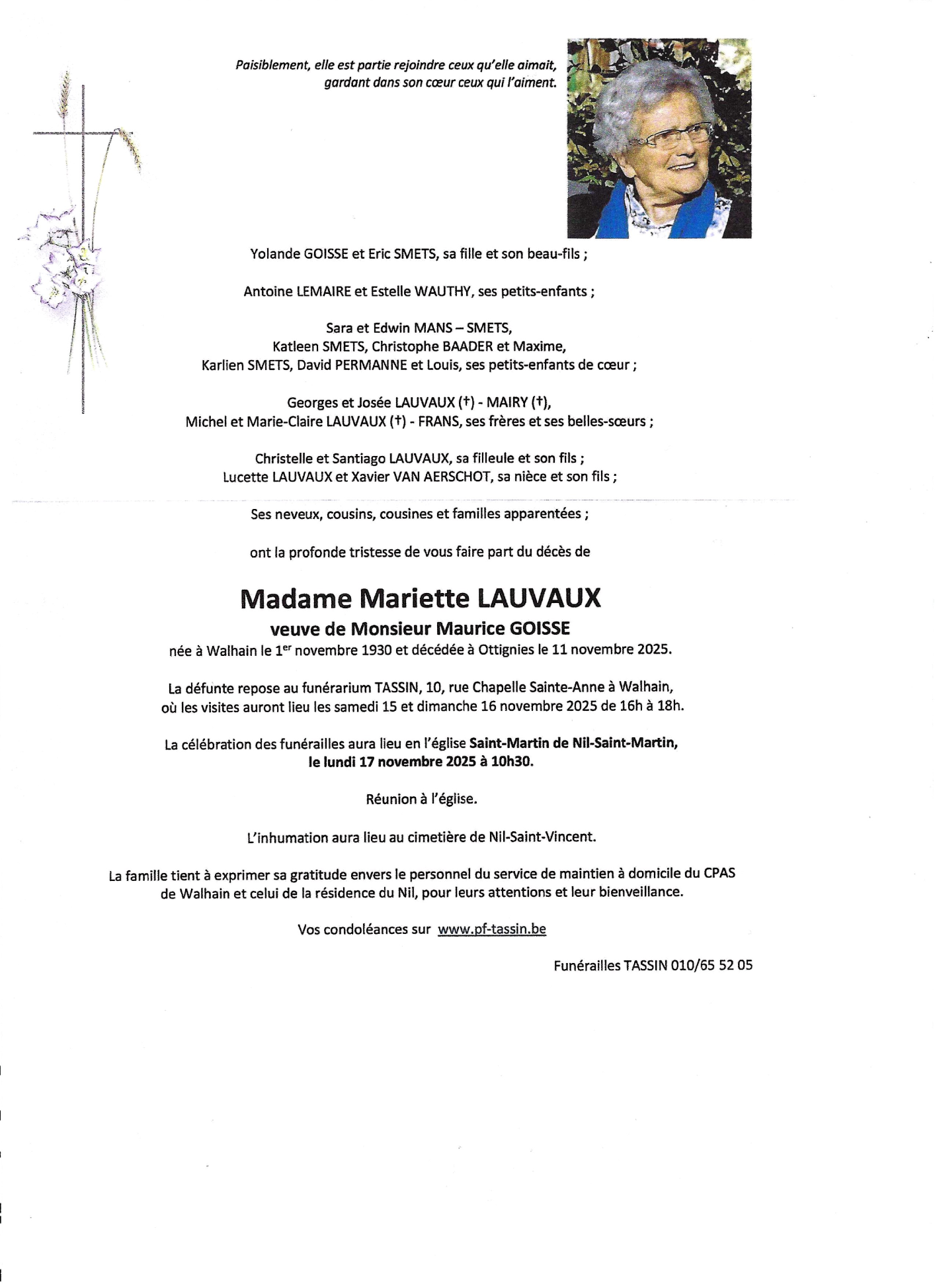 Overleden te Ottignies (1340, België) op dinsdag 11 november 2025 op 95-jarige leeftijd
