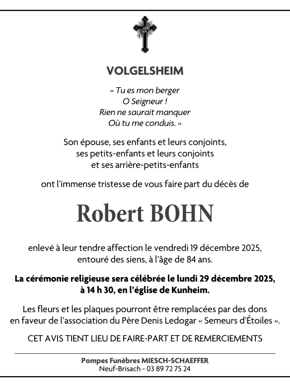 Fallecido en Colmar (68000) el viernes, 19 de diciembre de 2025 a la edad de 84 años