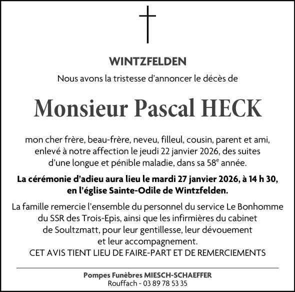 Décédé à Les Trois Epis (68410) le jeudi 22 janvier 2026 à l'âge de 57 ans