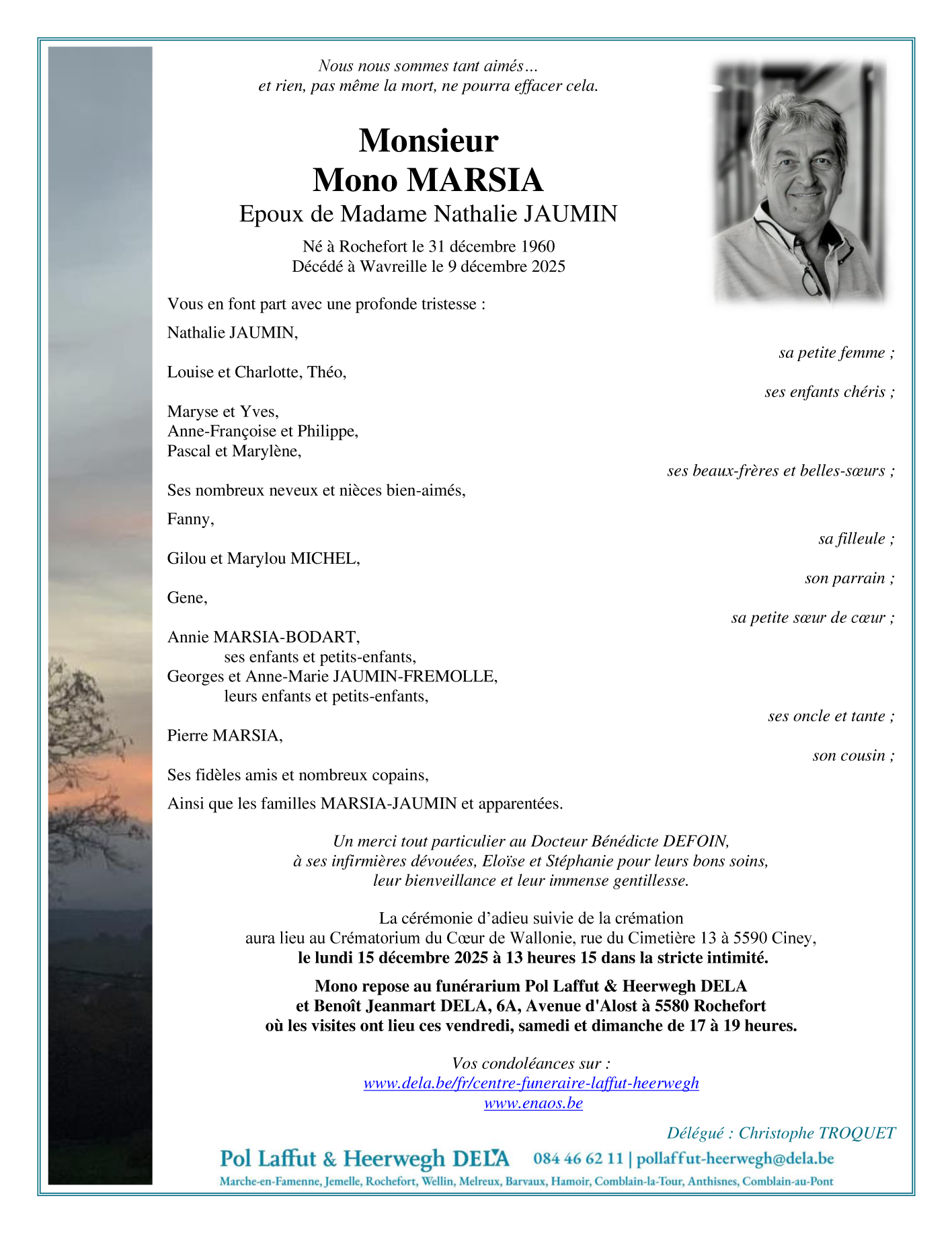 Fallecido en Wavreille (5580, Bélgica) el martes, 9 de diciembre de 2025 a la edad de 64 años