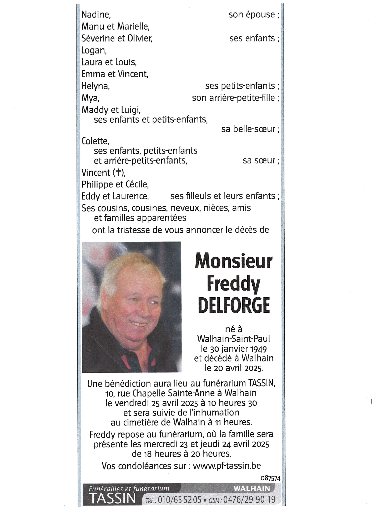Died in Walhain (1457, Belgium) on 20 April 2025 at the age of 76 years