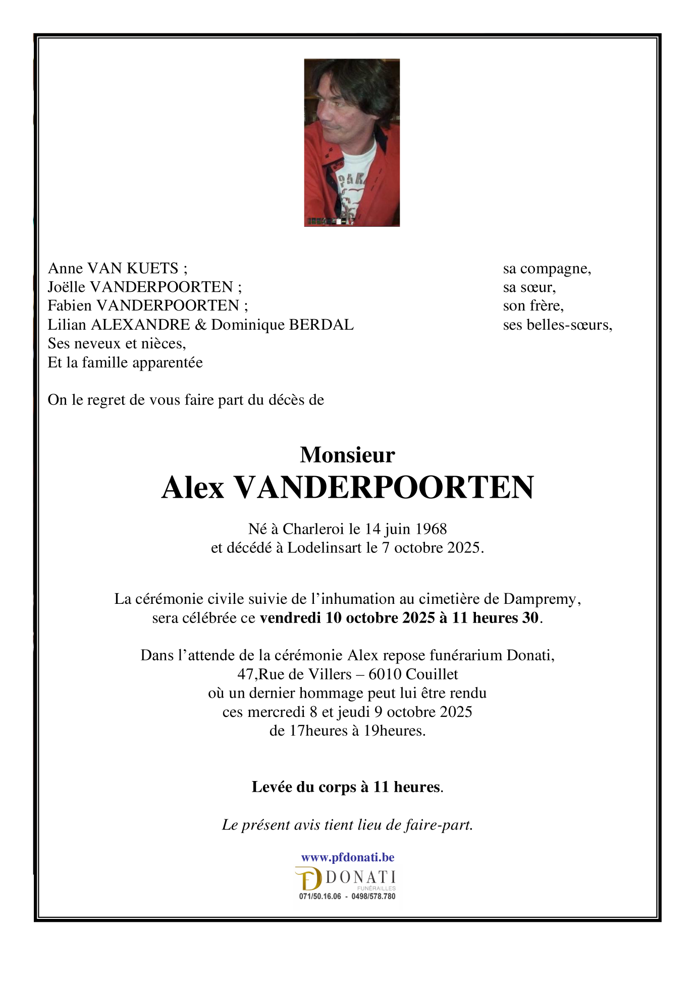Décédé à Lodelinsart (6042, Belgique) le mardi 7 octobre 2025 à l'âge de 57 ans