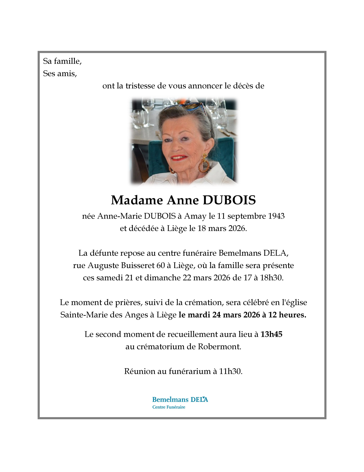 Died in Liège (4000, Belgium) on 18 March 2026 at the age of 82 years