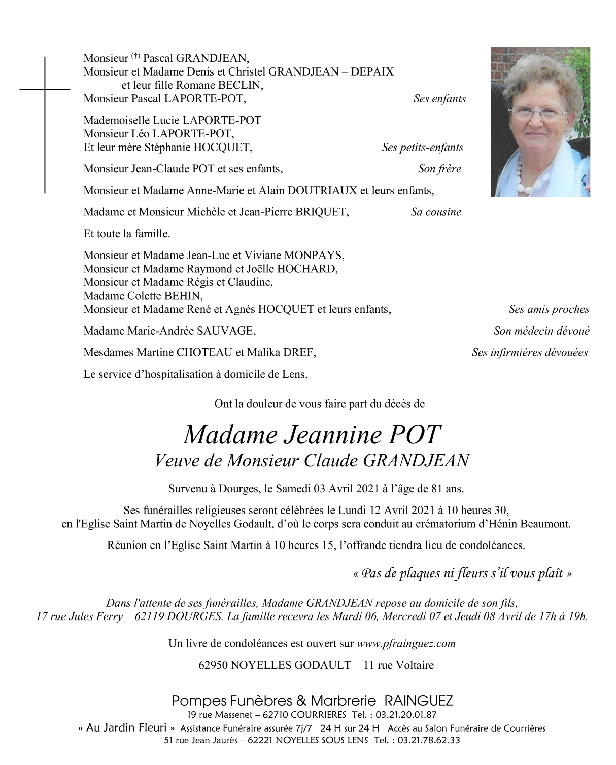Madame Jeannine GRANDJEAN née POT