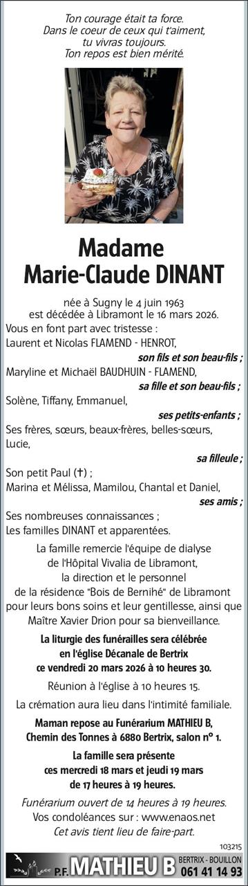 Overleden te Libramont (6800, België) op maandag 16 maart 2026 op 62-jarige leeftijd
