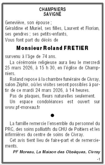 Décédé à Poitiers (86000) le dimanche 22 mars 2026 à l'âge de 74 ans