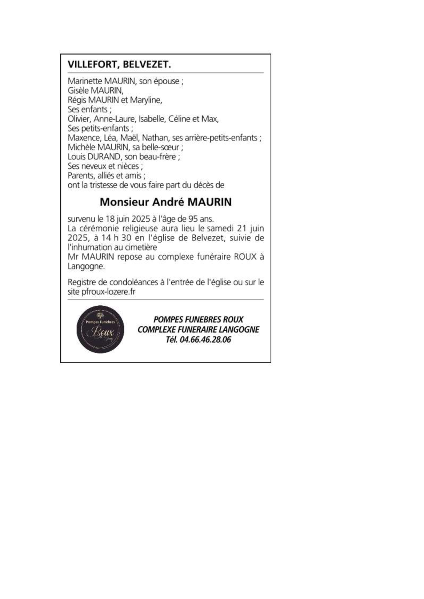 Décédé à Mende (48000) le mercredi 18 juin 2025 à l'âge de 95 ans