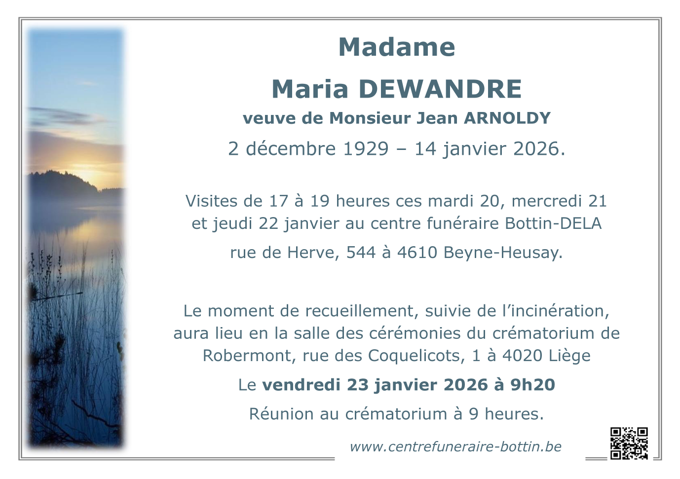 Died in Nandrin (4550, Belgium) on 14 January 2026 at the age of 96 years