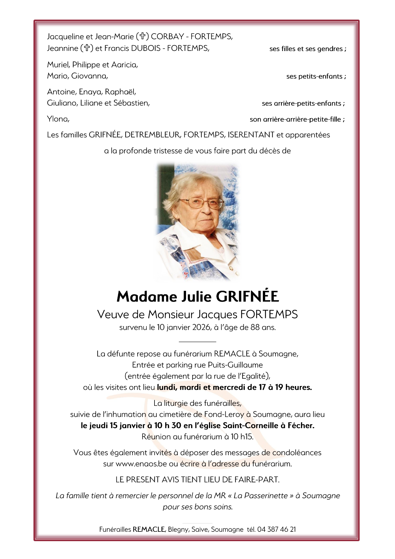 Madame Julie GRIFNÉE
