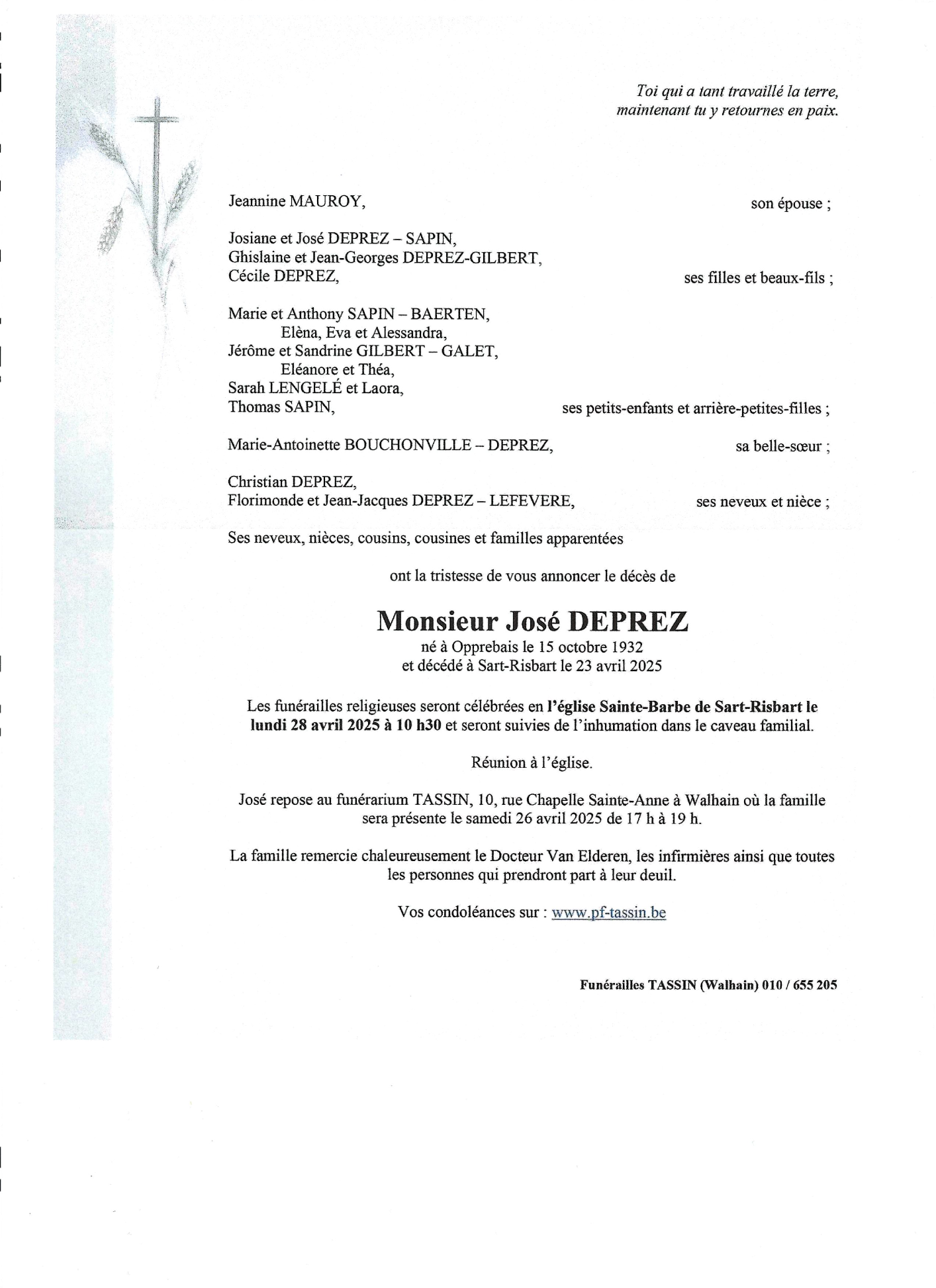 Overleden te Sart-Risbart (1315, België) op woensdag 23 april 2025 op 92-jarige leeftijd