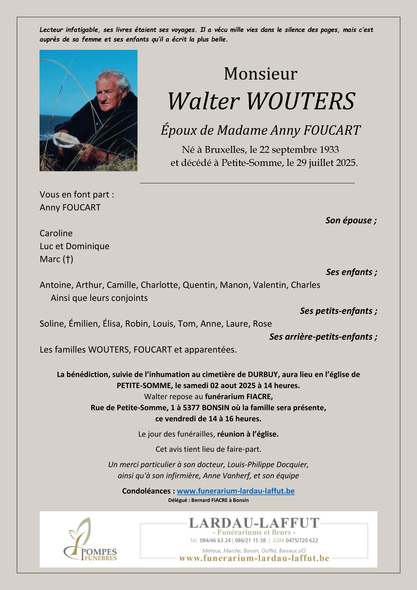 Died in Petite-Somme (6940, Belgium) on 29 July 2025 at the age of 91 years