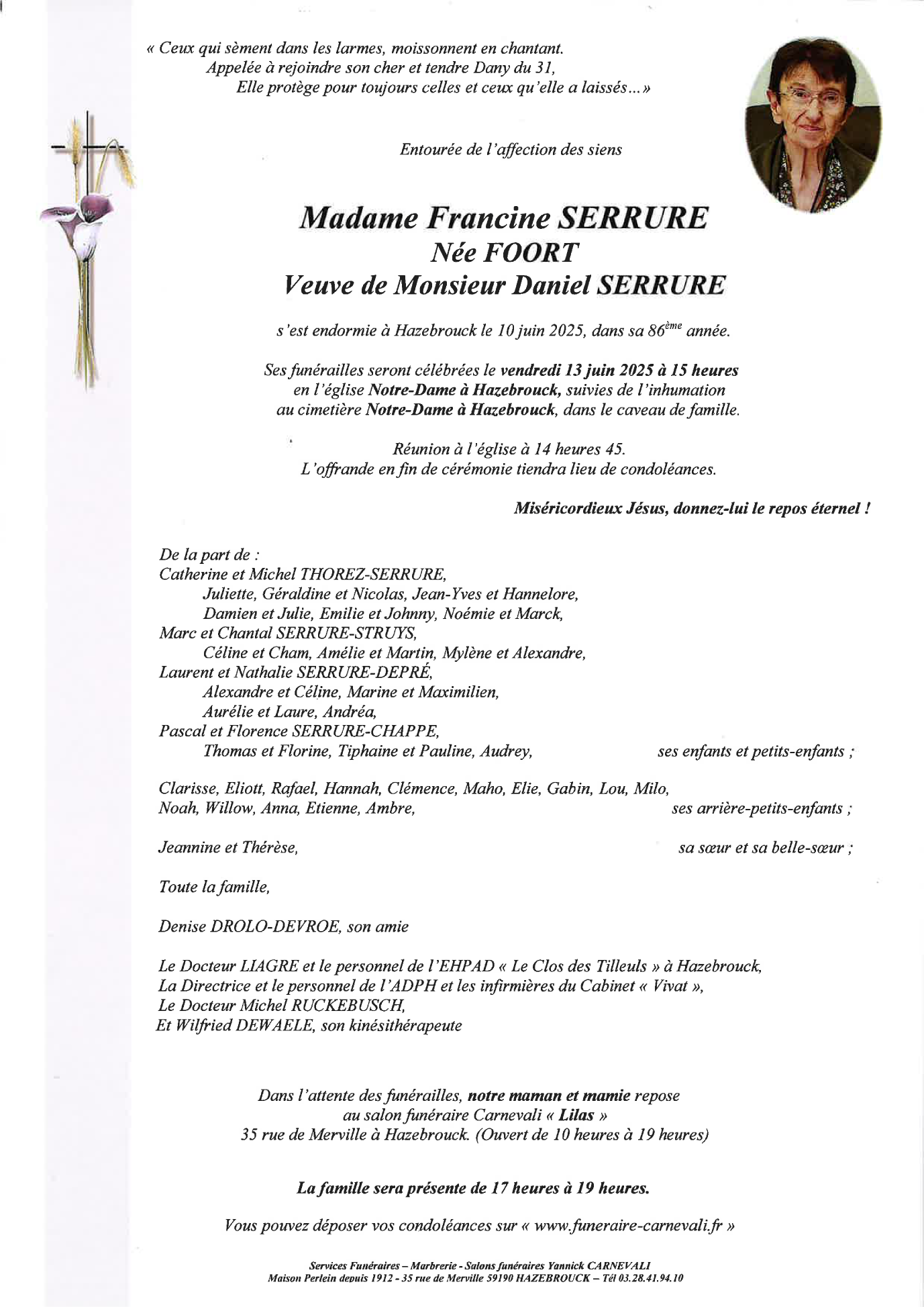 Fallecida en Hazebrouck (59190) el martes, 10 de junio de 2025 a la edad de 86 años
