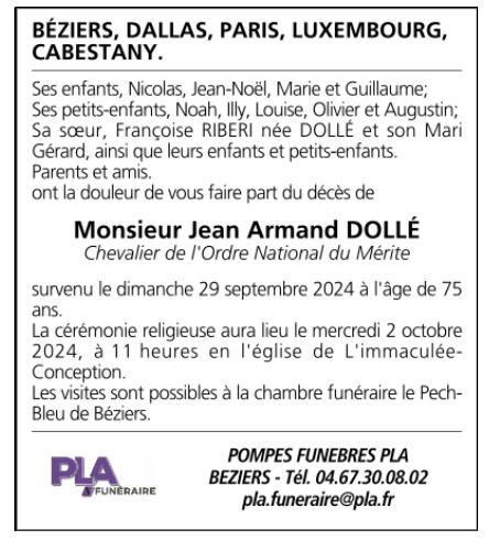 Décédé à Béziers (34500) le dimanche 29 septembre 2024 à l'âge de 75 ans