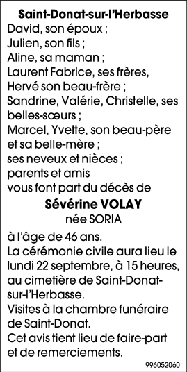Died in Saint-Donat-sur-l'Herbasse (26260) on 15 September 2025 at the age of 46 years