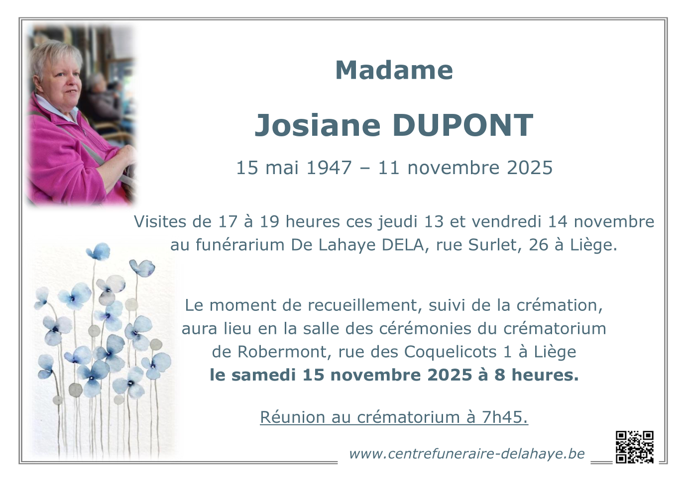 Décédée à Liège (4020, Belgique) le mardi 11 novembre 2025 à l'âge de 78 ans