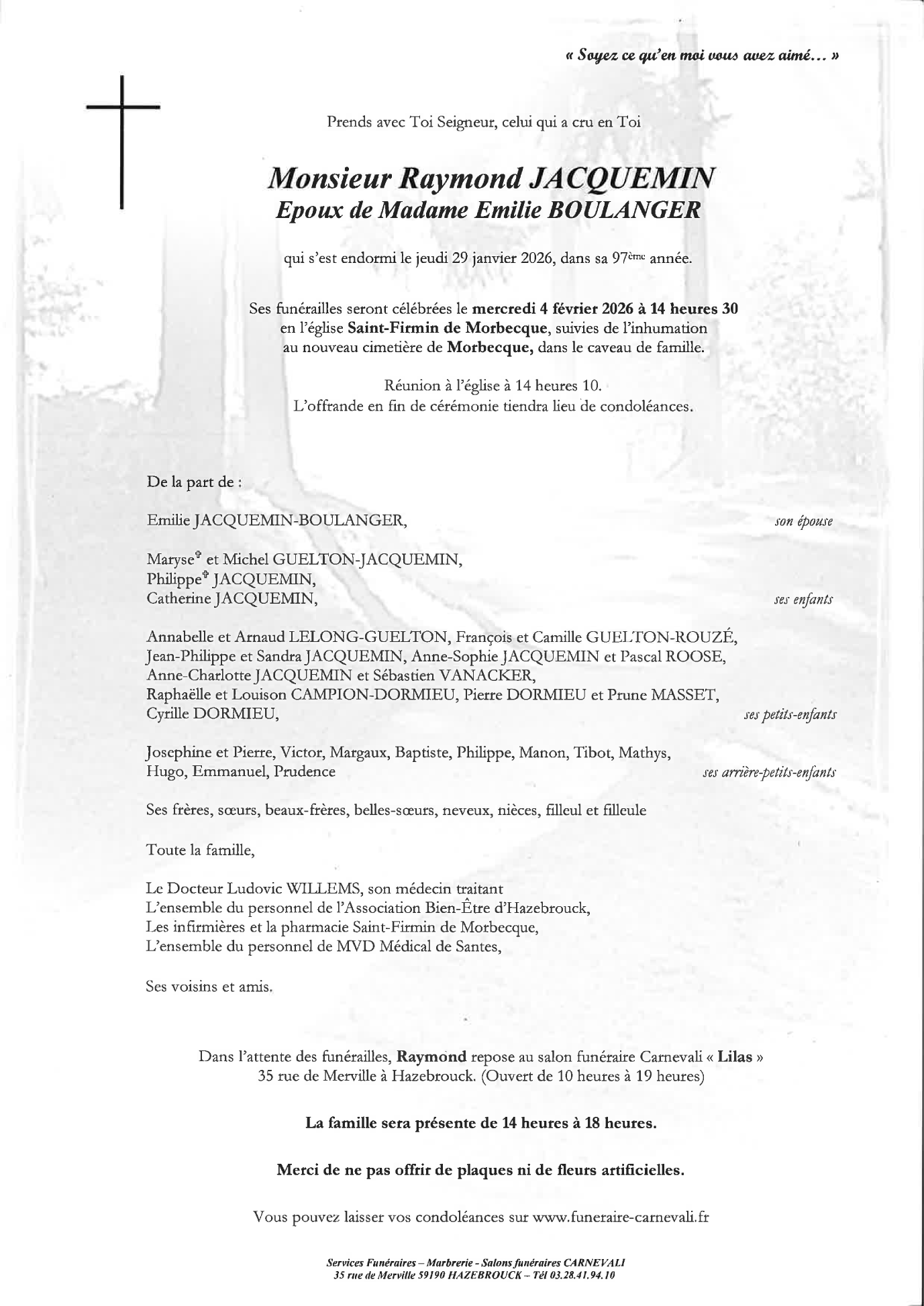 Décédé à Morbecque (59190) le jeudi 29 janvier 2026 à l'âge de 96 ans
