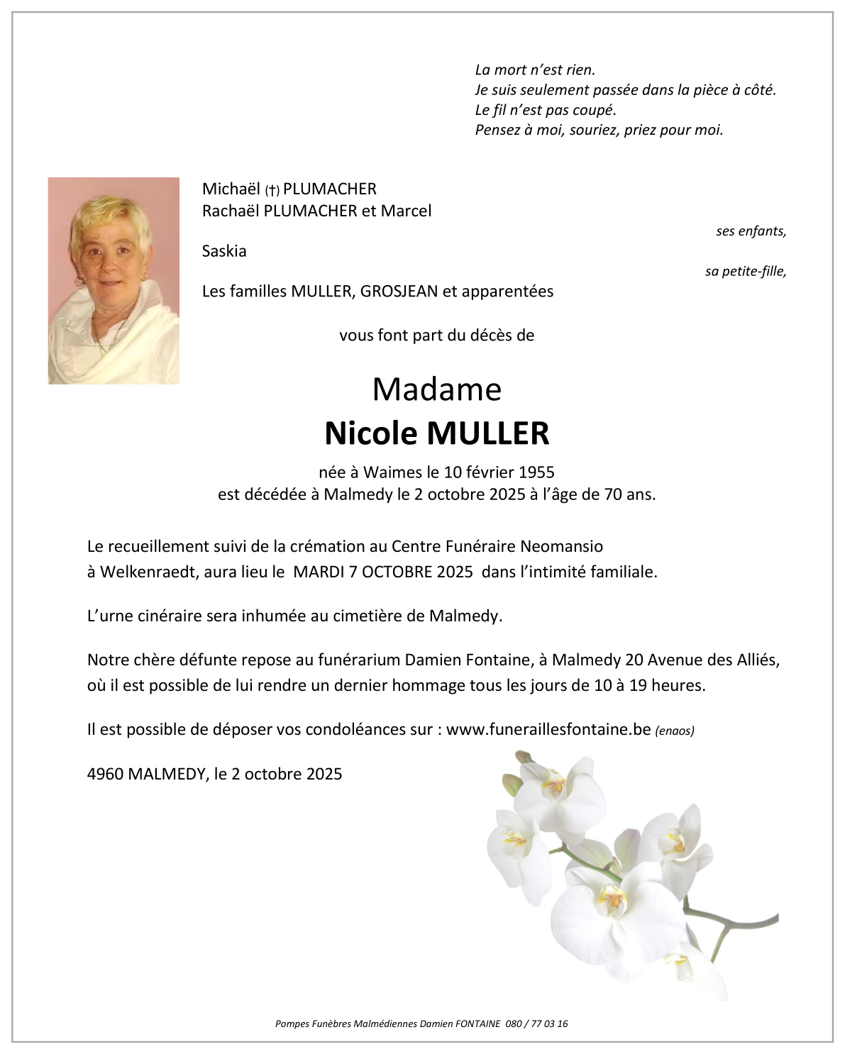 Overleden te Malmedy (4960, België) op donderdag 2 oktober 2025 op 70-jarige leeftijd