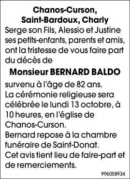 Died in Romans-sur-Isère (26100) on 09 October 2025 at the age of 82 years