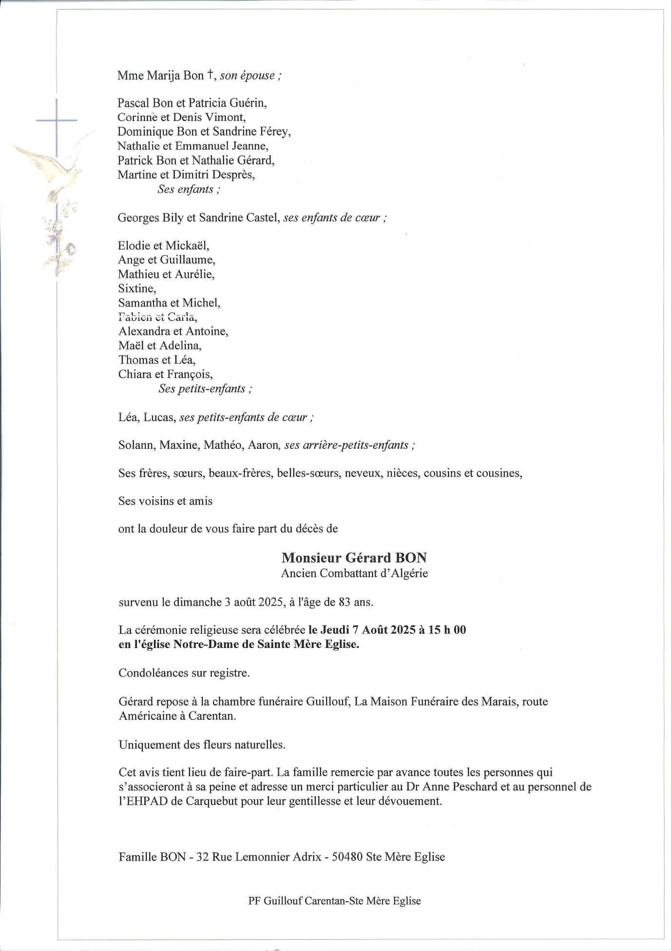 Died in Carquebut (50480) on 03 August 2025 at the age of 83 years