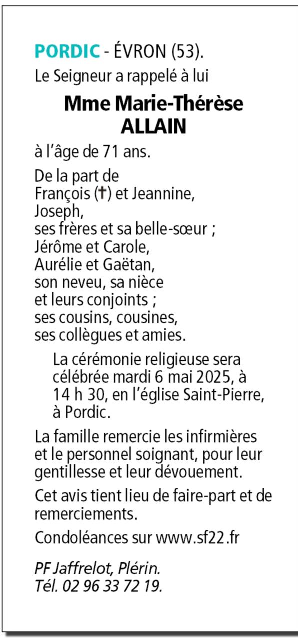 Died in Pordic (22590) on 29 April 2025 at the age of 71 years