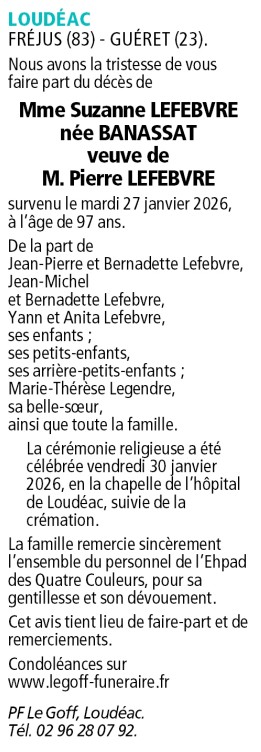 Died in Loudéac (22600) on 27 January 2026 at the age of 97 years