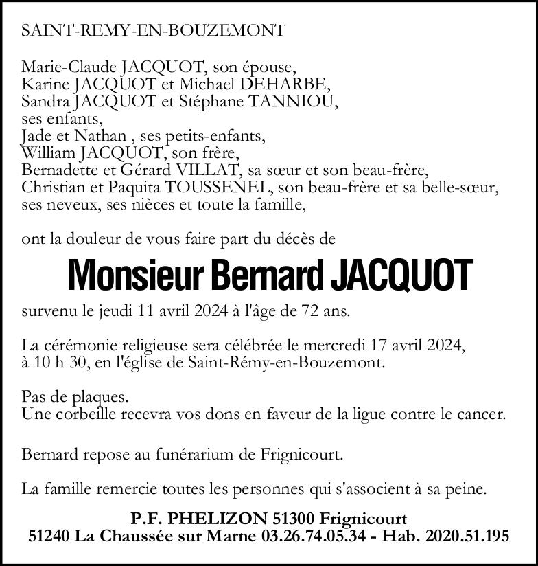 Décédé à Vitry-le-François (51300) le jeudi 11 avril 2024 à l'âge de 72 ans