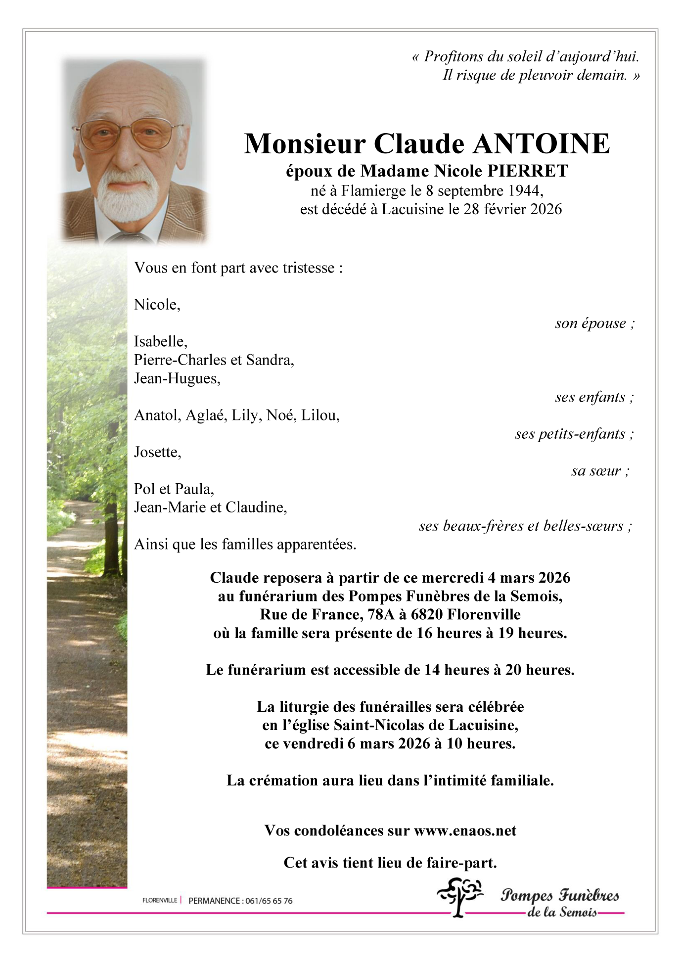 Fallecido en Lacuisine (6821, Bélgica) el sábado, 28 de febrero de 2026 a la edad de 81 años
