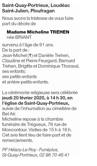 Madame Micheline TREHEN née BRIANT