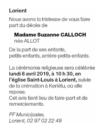 Madame Suzanne CALLOCH née ALLOT