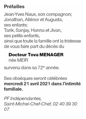 Overleden te Saint-Herblain (44800) op vrijdag 16 april 2021 op 71-jarige leeftijd