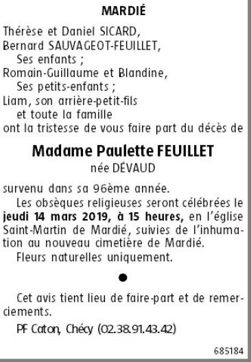 Madame Paulette FEUILLET née DEVAUD