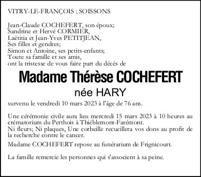 Epouse de Monsieur Jean-Claude COCHEFERT