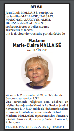 Madame Marie-Claire MALLAISÉ née HAÏSSAT