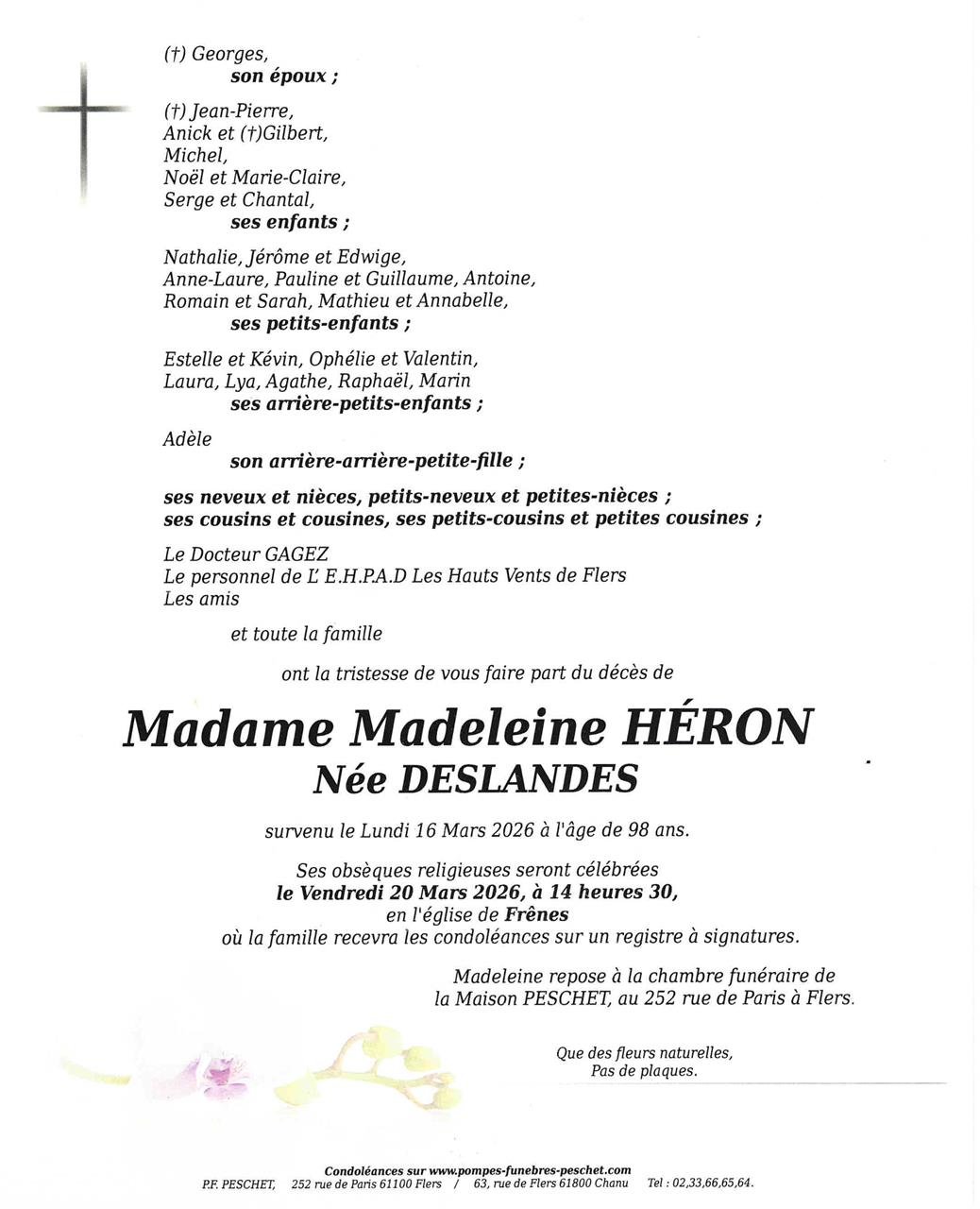 Madame Madeleine HÉRON née DESLANDES
