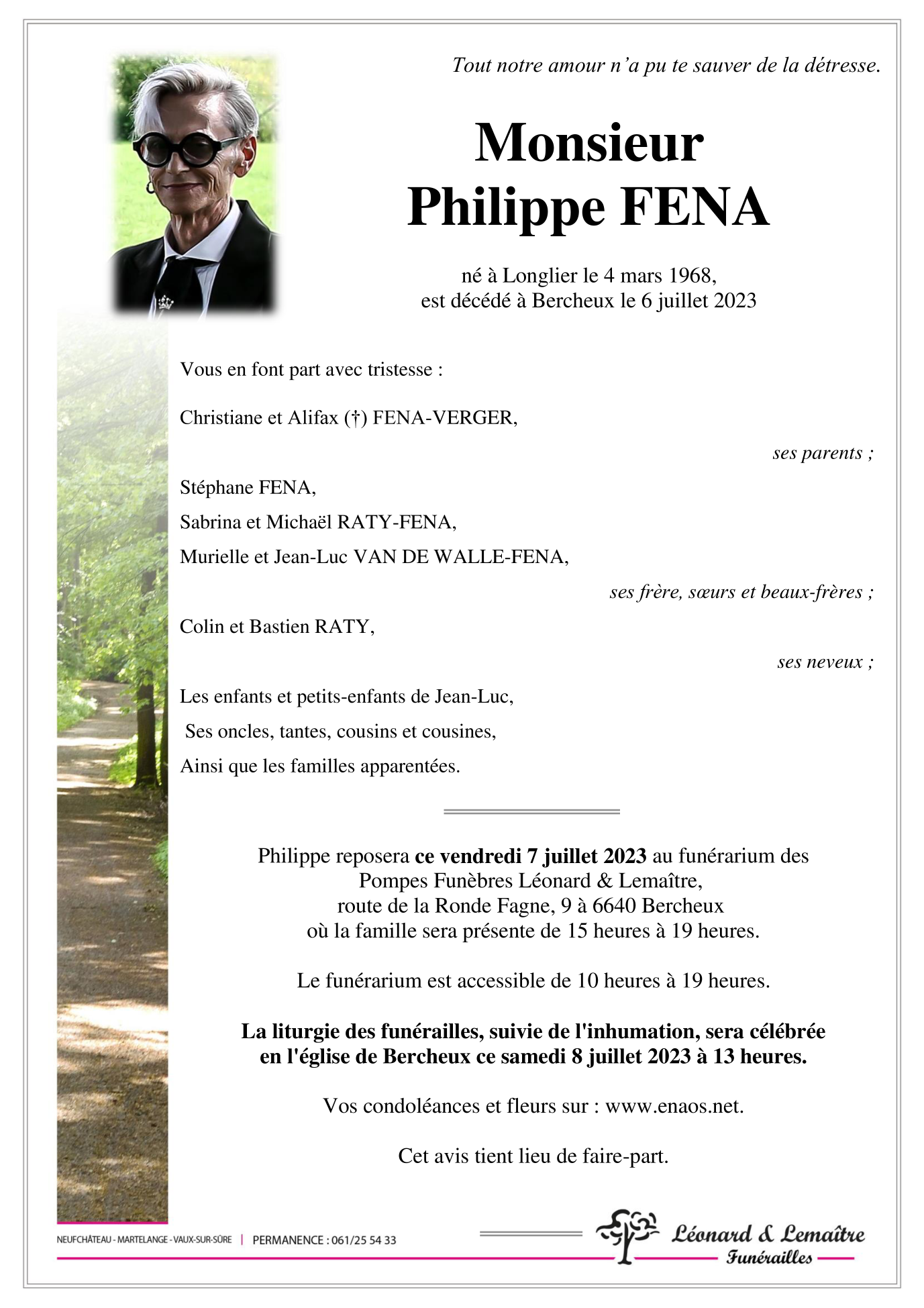 Décédé à Bercheux (6640, Belgique) le jeudi 6 juillet 2023 à l'âge de 55 ans