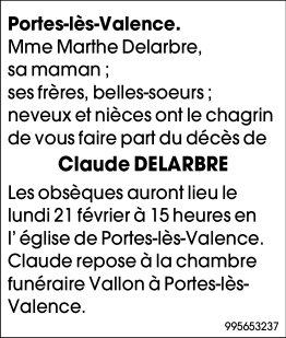 Décédé à Valence (26000) le mercredi 16 février 2022 à l'âge de 58 ans