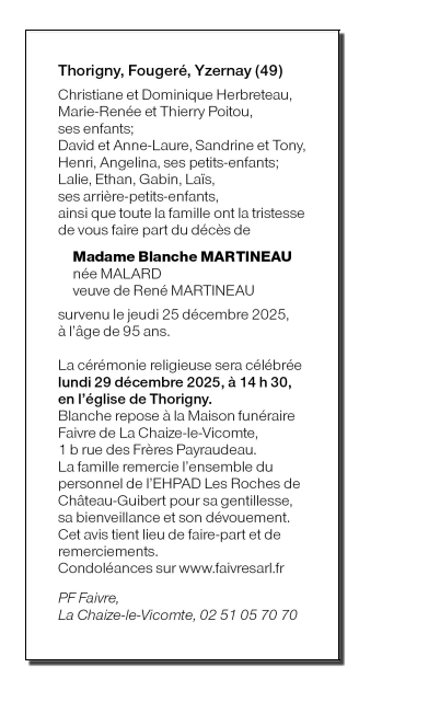Veuve de Monsieur René MARTINEAU