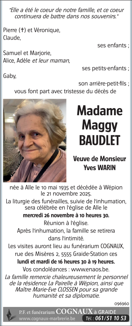 Fallecida en Wépion (5100, Bélgica) el viernes, 21 de noviembre de 2025 a la edad de 90 años