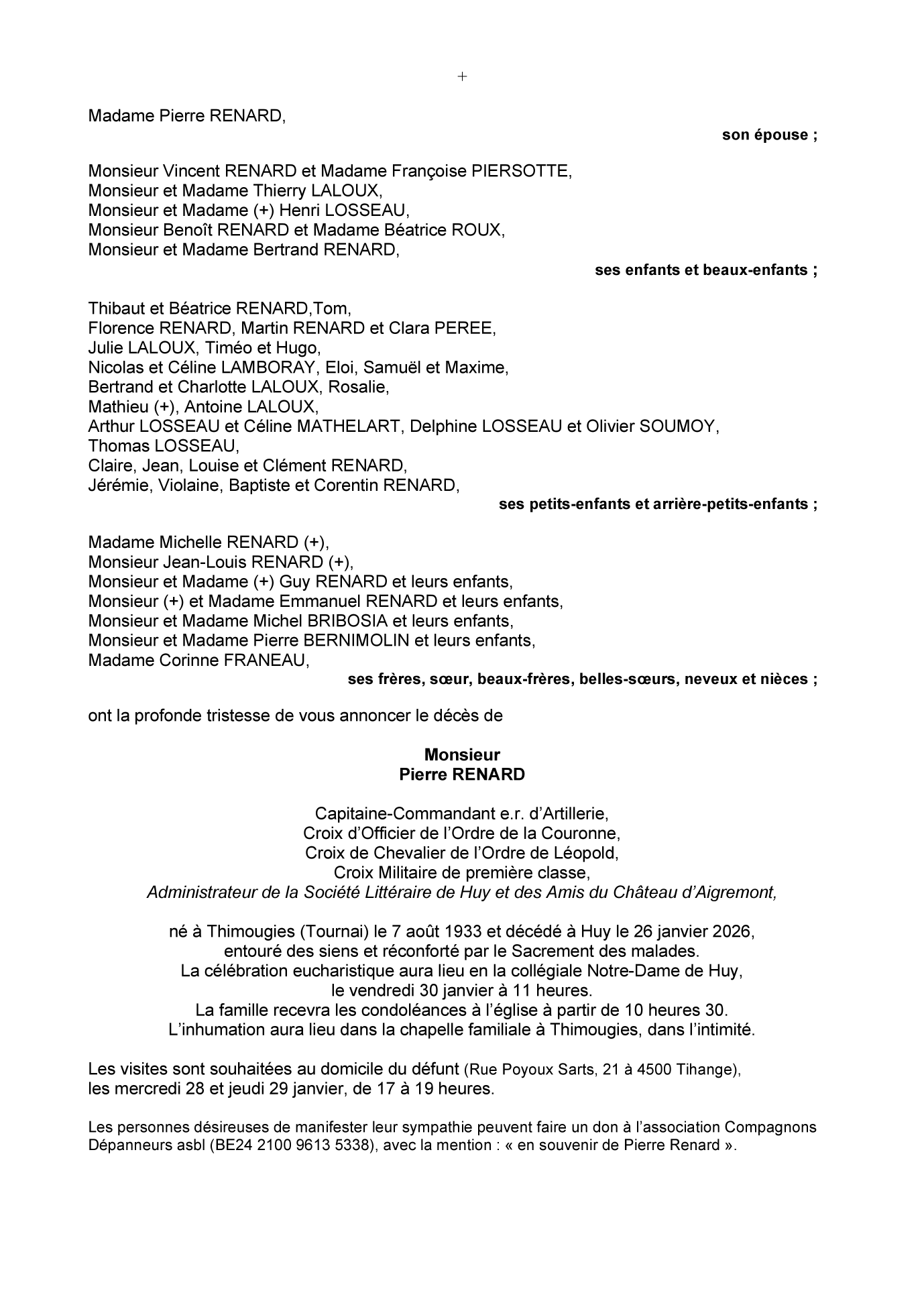 Fallecido en Huy (4500, Bélgica) el lunes, 26 de enero de 2026 a la edad de 92 años