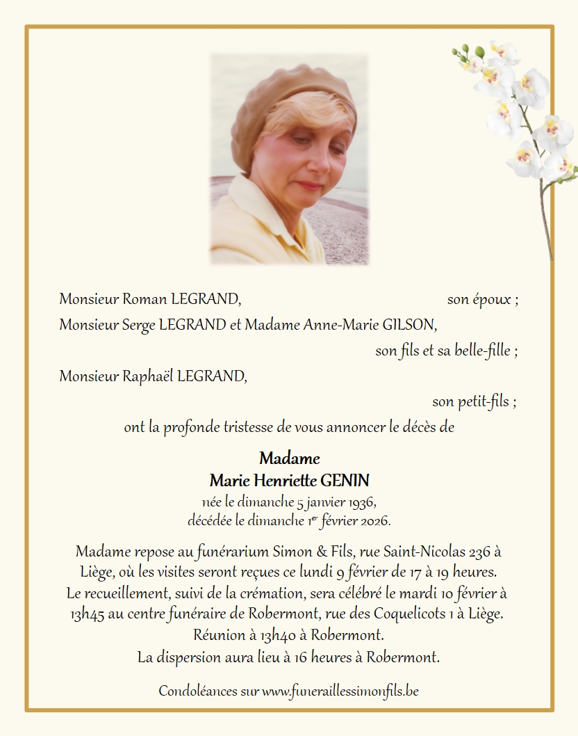 Died in Liège (4000, Belgium) on 01 February 2026 at the age of 90 years