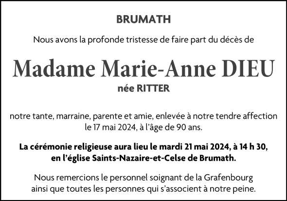 Madame Marie Anne Jeanne DIEU née RITTER