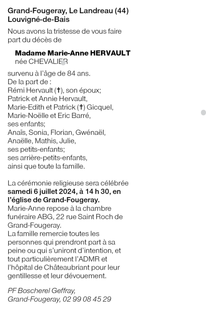 Overleden te Châteaubriant (44110) op woensdag 3 juli 2024 op 84-jarige leeftijd