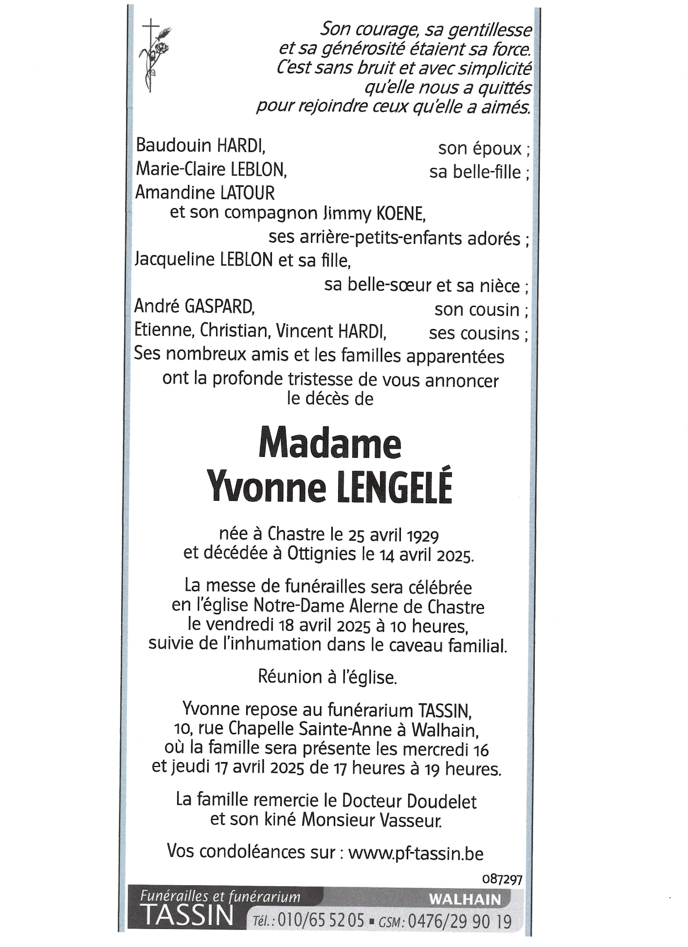 Overleden te Ottignies (1340, België) op maandag 14 april 2025 op 95-jarige leeftijd