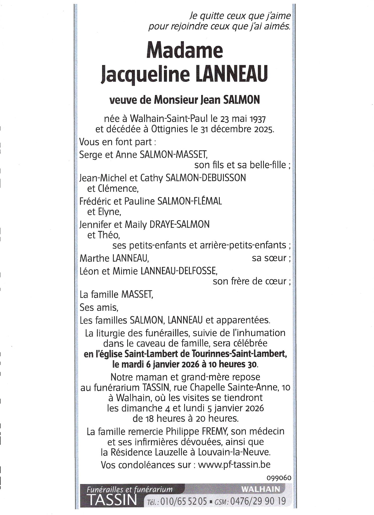 Décédée à Ottignies (1340, Belgique) le mercredi 31 décembre 2025 à l'âge de 88 ans