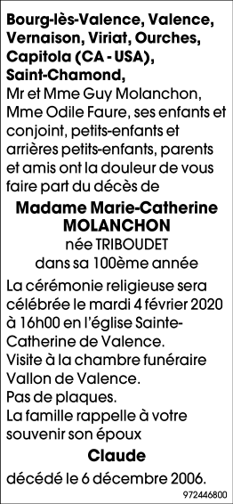 Madame Marie-Catherine MOLANCHON née TRIBOUDET