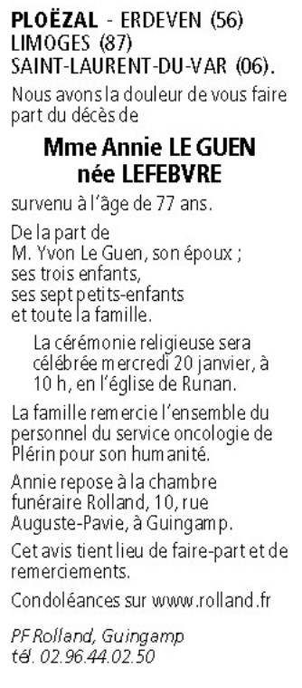 Madame Annie LE GUEN née LEFEBVRE