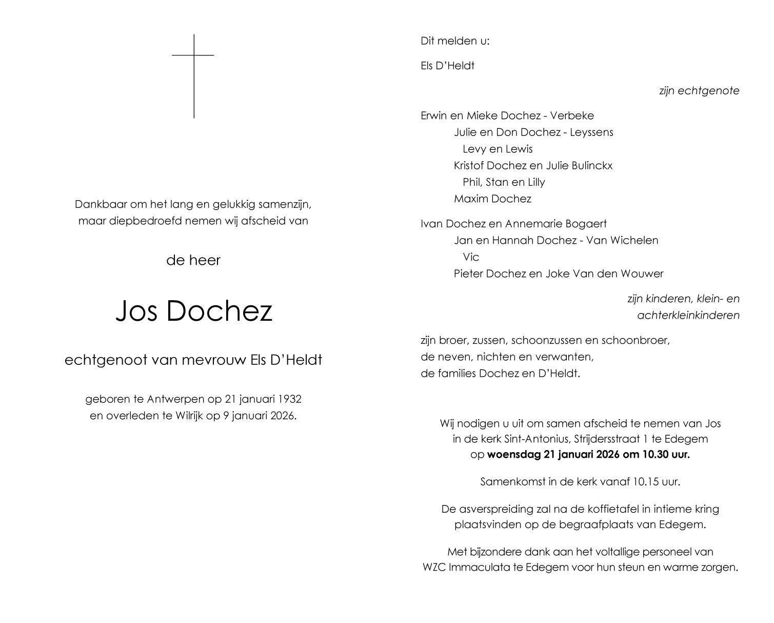 Died in Wilrijk (Antwerpen) (2610, Belgium) on 09 January 2026 at the age of 93 years