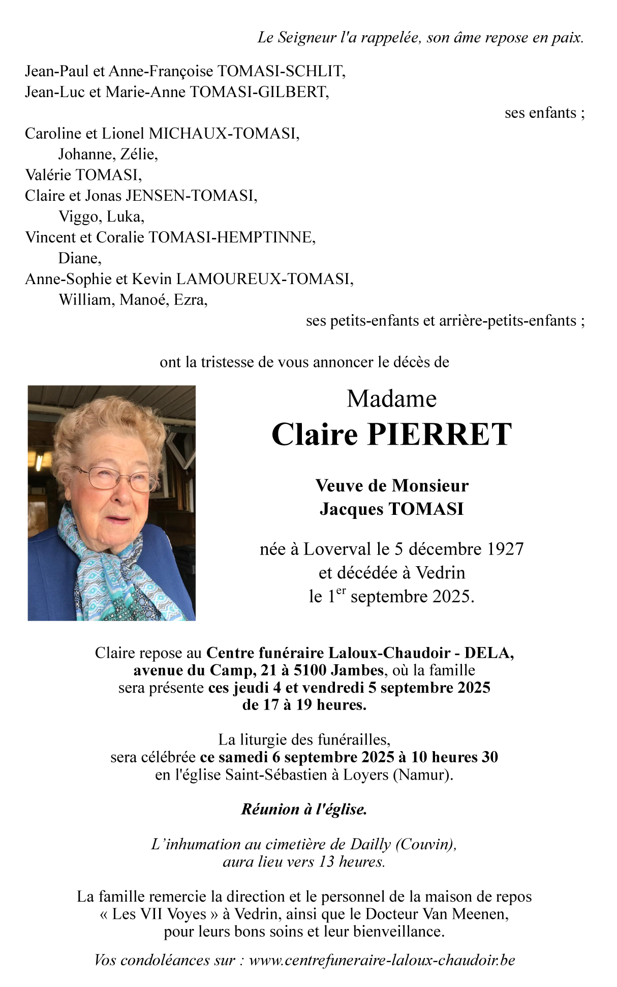 Décédée à Vedrin (5020, Belgique) le lundi 1 septembre 2025 à l'âge de 97 ans